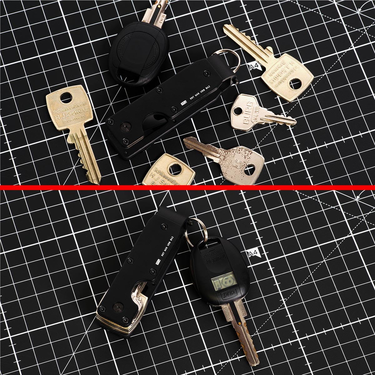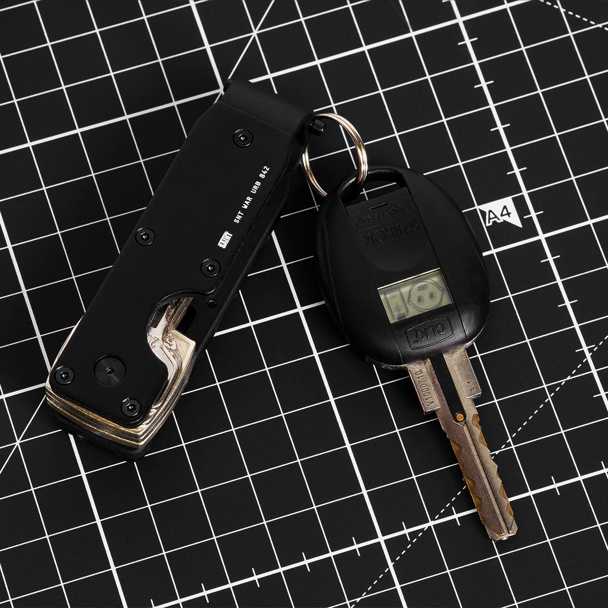 Each unit is precision-milled to fit up to five standard keys inside its compact 8.4 cm frame, secured by a tension plate and stainless screws. Larger or non-standard keys can be attached externally to the rear key ring, so car keys, fobs, or tools stay where they belong without bulging pockets. A reinforced clip on the back keeps the WARDER anchored to your pocket, belt, or bag, while its scratch-resistant coating stands up to the daily grind of urban deployment.